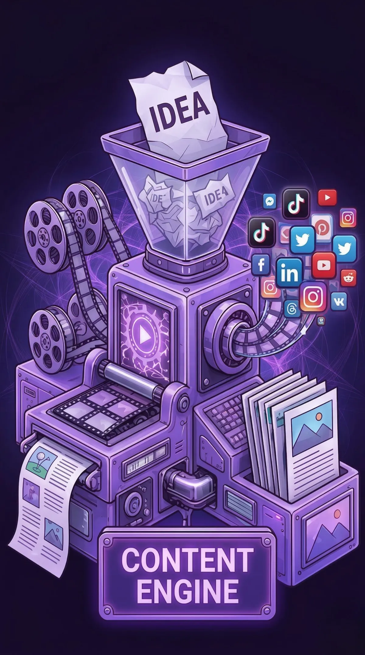 Most coaches quit content because it feels endless. This engine builds the infrastructure so one idea becomes posts, videos, articles, and email sequences, without you living online.